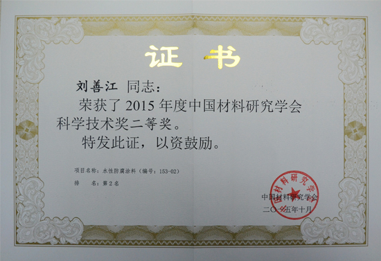晨陽水漆獲“2015年中國材料研究學會科學技術獎二等獎”